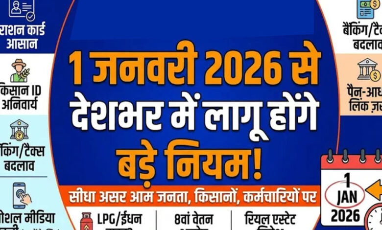 साल 2025 अब धीरे-धीरे समााप्‍त‍ि की ओर बढ़ रहा है, 1 जनवरी आते ही साल 2026 की शुरुआत हो जाएगी. नए साल की शुरुआत के साथ ही कई बड़े आर्थिक नियम भी बदल रहे हैं, जो सीधे आपकी जेब को प्रभावित कर सकते हैं. 1 जनवरी से LPG गैस के दाम से लेकर पैन, आधार, नया पे कमीशन तक… ढेर सारे नियम बदल रहे हैं. आइए विस्‍तार से जानते हैं इन नियमों के बारे में और इसका आपके जीवन में क्‍या प्रभाव होने वाला है?