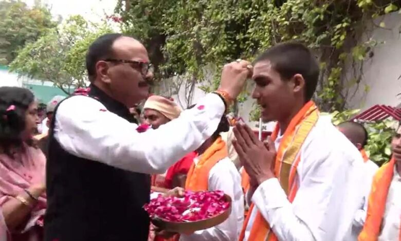 डिप्टी सीएम ब्रजेश पाठक ने अपने आवास पर बटुकों का फूल-माला पहनाकर स्वागत किया. उन्होंने बटुकों को तिलक लगाया और उनकी शिखा का सम्मान कर उनसे आशीर्वाद लिया. गौरतलब है कि डिप्टी सीएम ब्रजेश पाठक ने एक प्रोग्राम में यह कहा था कि शिखा का सम्मान होना चाहिए.
