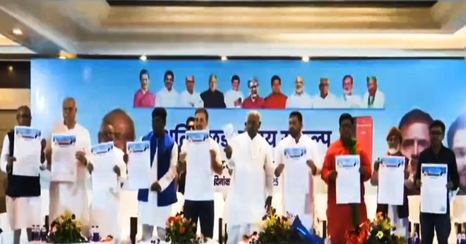 पटना: बिहार विधानसभा चुनाव 2025 को लेकर महागठबंधन ने अपना चुनावी घोषणा-पत्र का पहला भाग बुधवार को जारी किया। इसे ‘अति पिछड़ा न्याय संकल्प’ नाम दिया गया है। कांग्रेस नेता राहुल गांधी और आरजेडी नेता तेजस्वी यादव ने पटना में इस घोषणा-पत्र का ऐलान किया। इसमें अति पिछड़ा वर्ग (EBC) के लिए 10 बड़े वादे शामिल हैं।