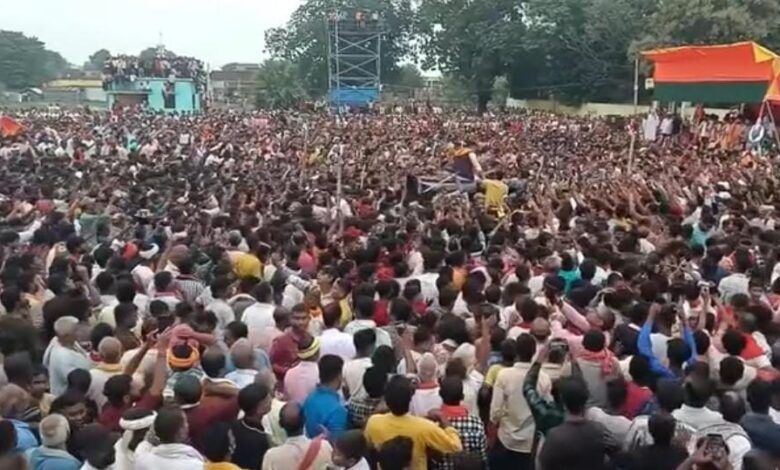 आरा : प्रधानमंत्री नरेंद्र मोदी ने रविवार को आरा के मझौंवा हवाई अड्डा पर आयोजित चुनावी जनसभा को संबोधित करते हुए भोजपुर के ग्रामीण और शहरी समर्थकों का भोजपुरी में अभिवादन किया और एनडीए के पक्ष में वोट की अपील की। प्रधानमंत्री ने बिहार के विकास को व्यापक रूप में भारत के विकास से जोड़ा और कहा कि विकसित बिहार, विकसित भारत का आधार है। मंच पर एनडीए के अनेक दिग्गज नेता मौजूद रहे और हजारों की भीड़ मोदी के जयकारों से गूंज उठी।