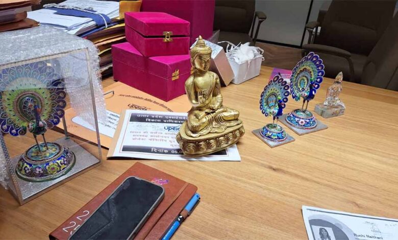 मुख्यमंत्री द्वारा दिए गए उपहारों में फिरोजाबाद से ग्लास के भगवान श्री राम, शिव, राधा-कृष्ण व बुद्ध की प्रतिमाएं शामिल रहीं, जबकि मुरादाबाद से ब्रास के शिव व बुद्ध की प्रतिमाएं, वाराणसी की मीनाकारी से बने बुद्ध व मोर और गुलाबी मीनाकारी से तैयार काशी विश्वनाथ मंदिर का मॉडल तथा सहारनपुर से लकड़ी के शिव व राधा-कृष्ण की प्रतिमाएं शामिल हैं।