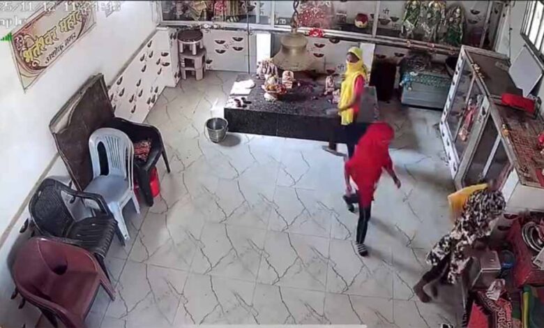 मंदिर से दानपेटी चोरी: लड़कियाँ CCTV कैमरे में हुईं कैद