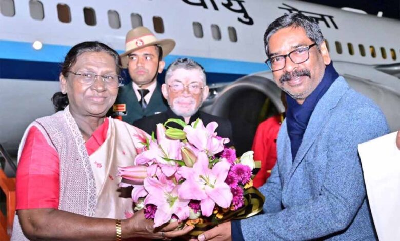 राष्ट्रपति द्रौपदी मुर्मू तीन दिवसीय झारखंड दौरे पर, रांची पहुंचते ही राज्यपाल और सीएम ने किया स्वागत