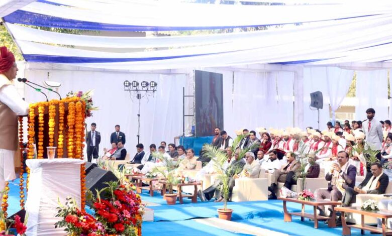 राज्यपाल पटेल ने कहा कि रामायण एक ऐसा ग्रंथ है, जिसमें प्रत्येक व्यक्ति के लिए जीवन आदर्श मिलते हैं। उन्होंने राम, लक्ष्मण संवाद के प्रसंग के माध्यम से युवाओं को हमारे सांस्कृतिक जीवन मूल्यों को आत्मसात करने के लिए प्रेरित किया। उन्होंने विद्यार्थियों से कहा कि दीक्षांत, शैक्षणिक जीवन का एक महत्वूपर्ण पड़ाव है। वहीं शिक्षा अनुसंधान और राष्ट्र निर्माण की दिशा में संस्थान की सतत और दीर्घकालिक यात्रा का उत्सव भी है। उन्होंने कहा कि विद्यार्थियों की सफलता केवल उनकी नहीं इसमें माता-पिता का त्याग, गुरुजनों का मार्गदर्शन और समाज के किसी ना किसी व्यक्ति का योगदान है। उन्हें प्राप्त ज्ञान और सामर्थ्य से कृतज्ञता के भाव, भावना के साथ समाज और राष्ट्र सेवा में सहभागी बनना चाहिए। उन्होंने कहा कि प्रधानमंत्री नरेन्द्र मोदी के दूरदर्शी नेतृत्व में समर्थ, सशक्त, समद्ध और विकसित भारत के रूप में आगे बढ़ रहा है। विश्वविद्यालय की यह जिम्मेदारी है कि नई राष्ट्रीय शिक्षा नीति के विभिन्न आयामों को केवल औपचारिक नहीं बल्कि प्रभावी और सार्थक रूप में लागू करें। क्योंकि शिक्षण संस्थान और शिक्षक केवल ज्ञान के केंद्र नहीं, बल्कि आने वाले कल और भावी पीढ़ी के सशक्त निर्माता होते हैं।