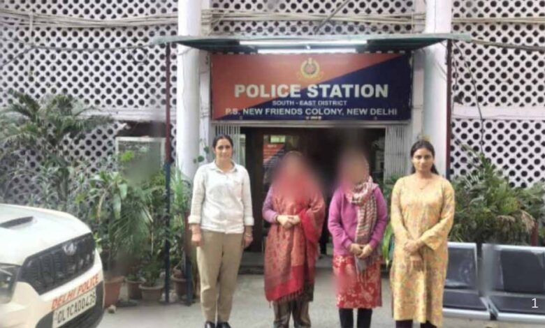 दक्षिणी पूर्वी जिला पुलिस की गिरफ्त में आरोपित रेखा व पूजा।
