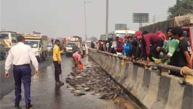 सोनीपत NH-44 पर मछलियों से लदा कैंटर पलटा, भारी भीड़ उमड़ी और जाम से यात्री परेशान