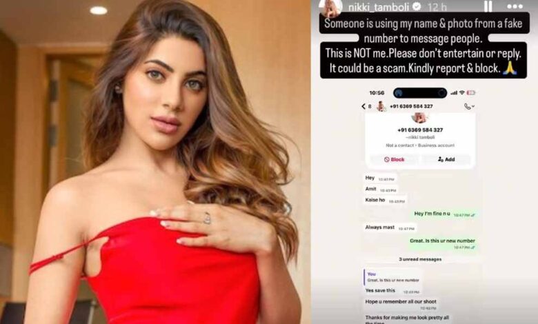 बता दें कि निक्की तंबोली ने अपने सोशल मीडिया पर दावा किया है कि उनके नंबर और तस्वीरों का यूज करके कोई लोगों को ठगने की कोशिश कर रहा है. कोई उनका नाम लेकर उनके करीबियों को कॉन्टैक्ट कर रहा है. ये निक्की नहीं है. निक्की ने कहा – ये इंसान मैं नहीं हूं. प्लीज आप लोग इस शख्स पर ध्यान न दें. इस शख्स को रिप्लाई न करें. ये एक स्कैम हो सकता है. इस नंबर से टैक्स आते ही इस नंबर को ब्लॉक कर दें. एक्ट्रेस ने ये बात अपने इंस्टाग्राम की स्टोरी पर लिखकर शयर किया है.