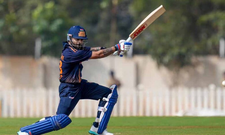 विराट कोहली के लिए विजय हजारे टूर्नामेंट क्या घट रहा है। पहले मैच में 131 रनों की शतकीय पारी खेलने वाले किंग कोहली ने गुजरात के खिलाफ दूसरे मुकाबले में भी तूफानी अंदाज में 77 रन बनाए, हालांकि वह अपने लगातार दूसरे शतक से चूक गए। कोहली ने शतक से चूकने के बावजूद इतिहास रच दिया। वह अब लिस्ट ए क्रिकेट में सबसे ज्यादा औसत से रन बनाने वाले बल्लेबाज बन गए हैं। जी हां, इस लिस्ट में उन्होंने ऑस्ट्रेलिया के दिग्गज माइकल बेवन को पछाड़ा है। गुजरात के खिलाफ 77 रनों की इस पारी के बाद विराट कोहली का लिस्ट ए में औसत 57.87 का हो गया है, जो एक वर्ल्ड रिकॉर्ड है।