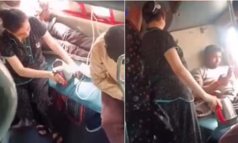 ट्रेन बनी ‘किचन’, लोअर बर्थ पर चाय बनाने लगी महिला, वीडियो ने शुरू की बहस
